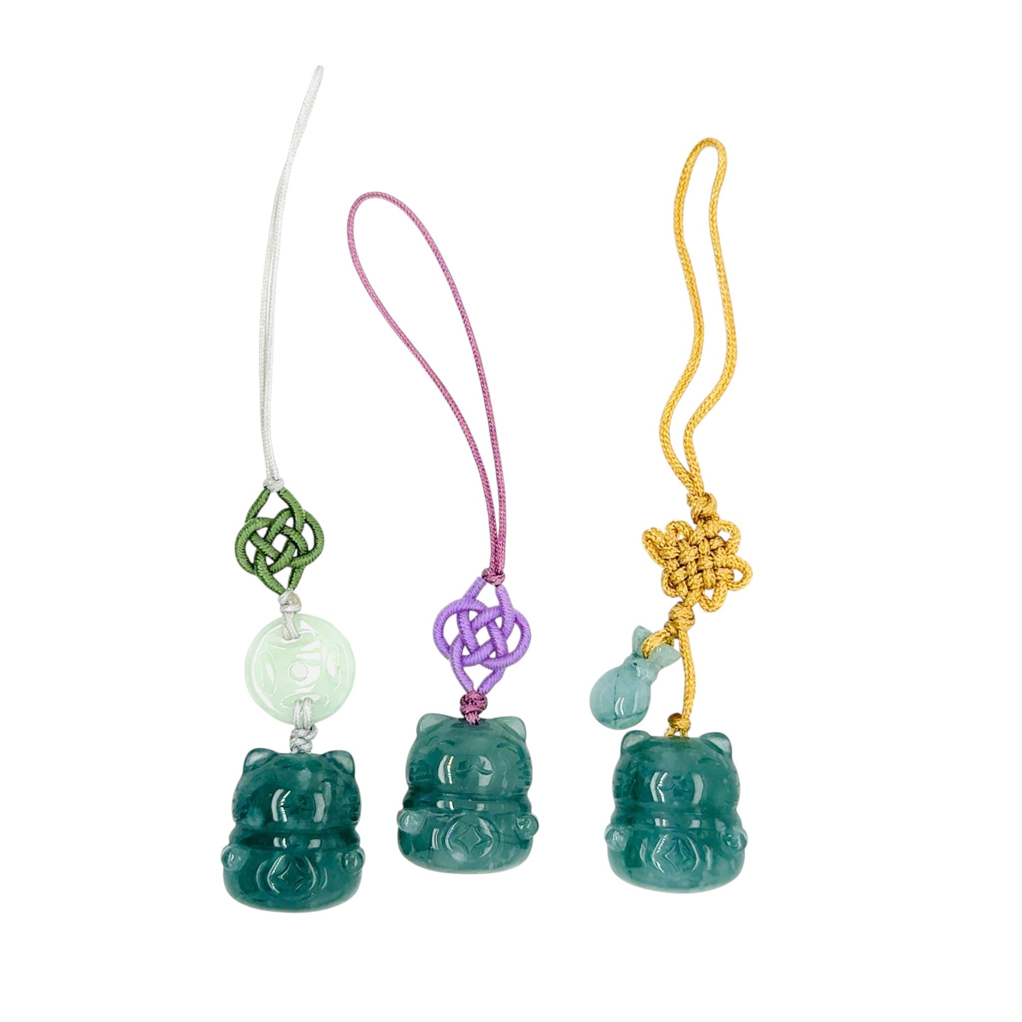 Blue Burmese Jadeite Chubby Money Cat with Mini Baqua Charm